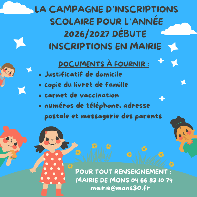 Scolaire INSCRIPTIONS SCOLAIRES 12/01/2026 Agrandir < DISTRIBUTION D’ECO-COMPOSTEURS ESPACE SANS TABAC >